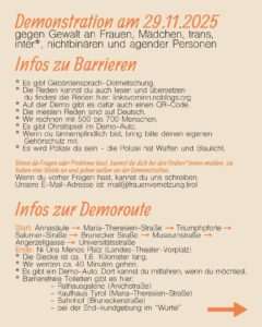 Demonstration am 29.11.2025 gegen Gewalt an Frauen, Mädchen, trans, inter*, nichtbinären und agender Personen
